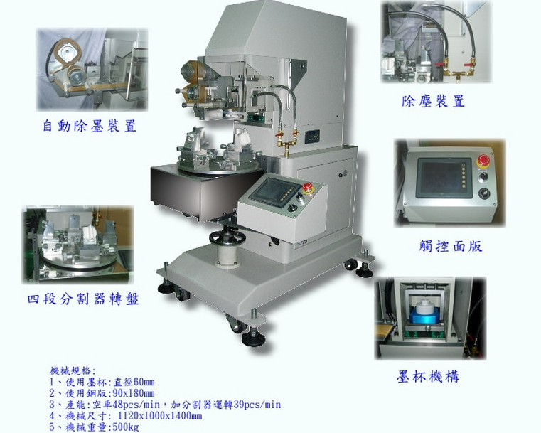 TM-P6S六色穿梭移印機Y油盅式四色直推移印機其主要特點及性能參數(shù)如下: